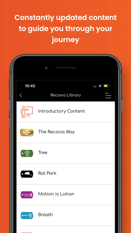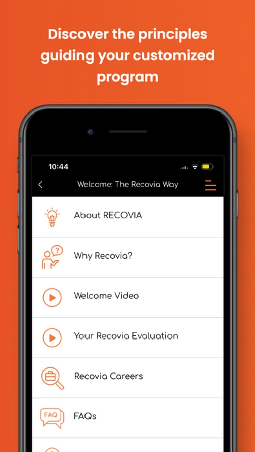 The Recovia app is instrumental in enabling clients to fully engage with our biopsychosocial program, offering unlimited access to all necessary education from our three disciplines: behavioral health, physical therapy, and medical. This ensures that you have all the tools required to effect meaningful life changes. Utilized throughout your program, the app guarantees ongoing engagement, even when you’re not directly interacting with a provider. In addition to educational resources, our app offers demonstration videos, behavioral health exercises, worksheets, and much more, offering constant support so you’re never alone in your journey. Furthermore, the app enables you to track your goals and earn “tags” as a reminder of your overall progress and mastery of Recovia’s core principles.