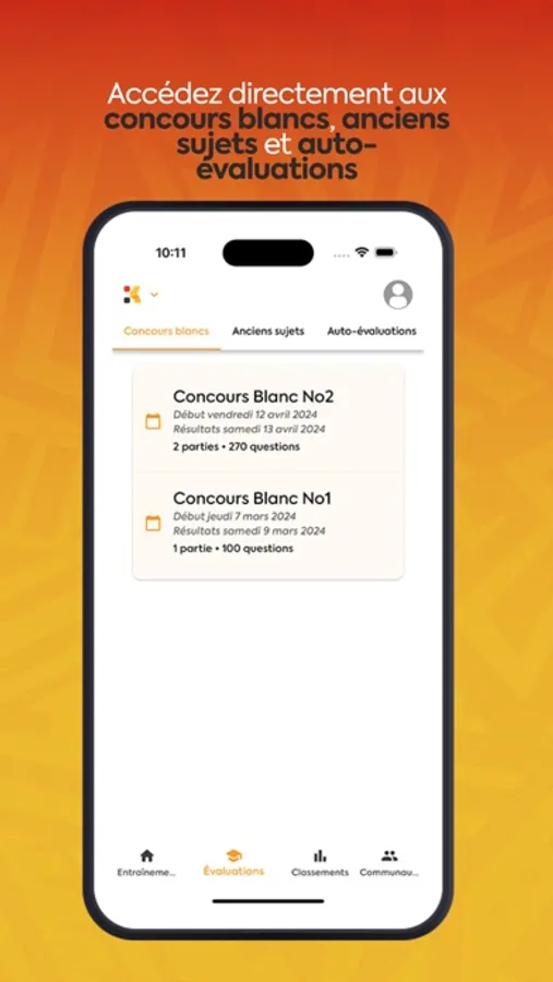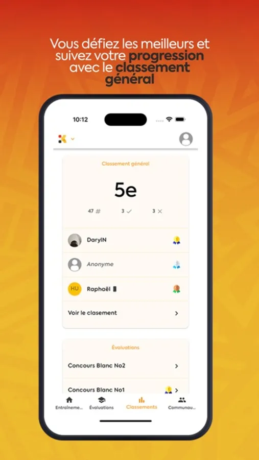 - Classement : Suis ta progression et évalue ton niveau par rapport aux autres candidats