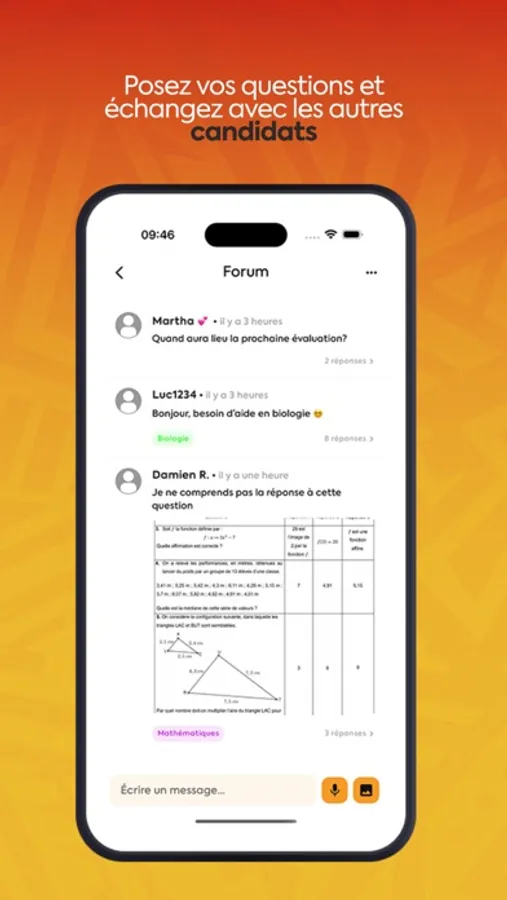 - Communauté: interagis avec tes camarades, et trouve des réponses à tes questions.