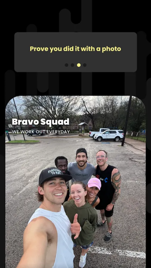 SquadUp helps you and your accountability partner build habits! It's easy to get started: just invite your partner, pick a habit you're both excited to build, then post daily photos to prove you're working towards your goal. Hold each other accountable and grow towards a more intentional, healthier lifestyle together!
