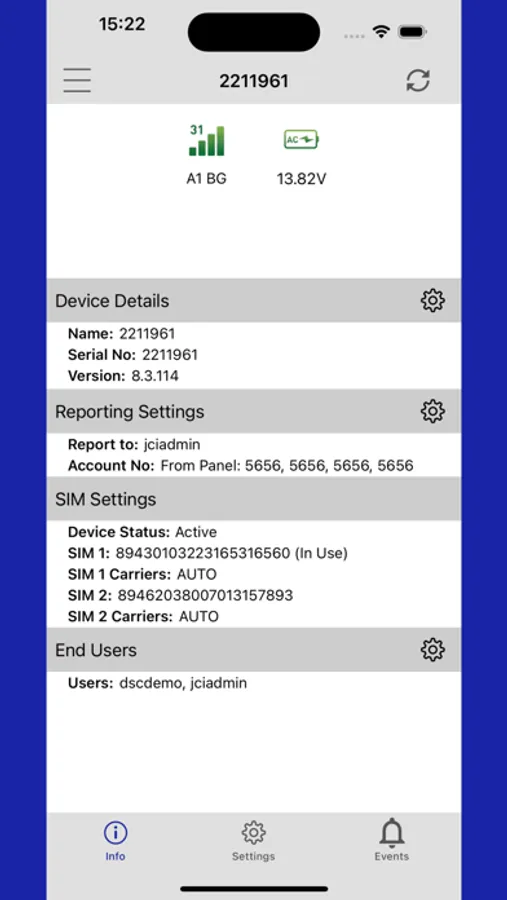 Check device status – Online, connected, input voltage, SIM status, account number, cell provider and end user.