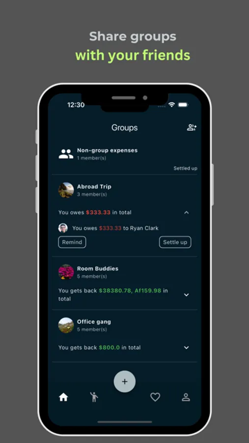 Keep track of your shared bills and balances with housemates, trips, groups, friends, and family.