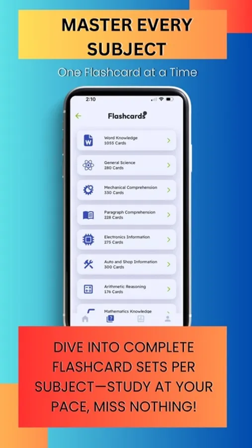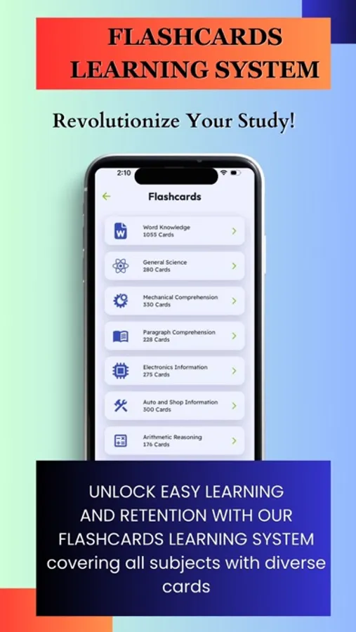 Flashcard Study System: What truly distinguishes the PrepGenius ASVAB Study Guide from the competition is our Flashcard Study System. With more than 2000 meticulously crafted flashcards covering every subject of the ASVAB test, this system offers a complete review of all ASVAB test sections, making it your secret weapon for mastering the material.