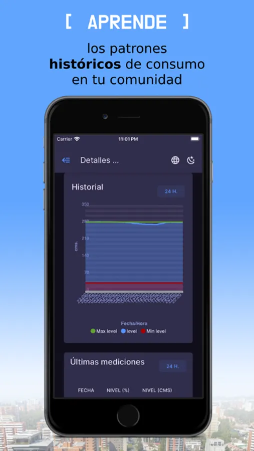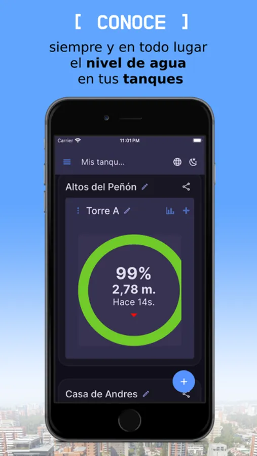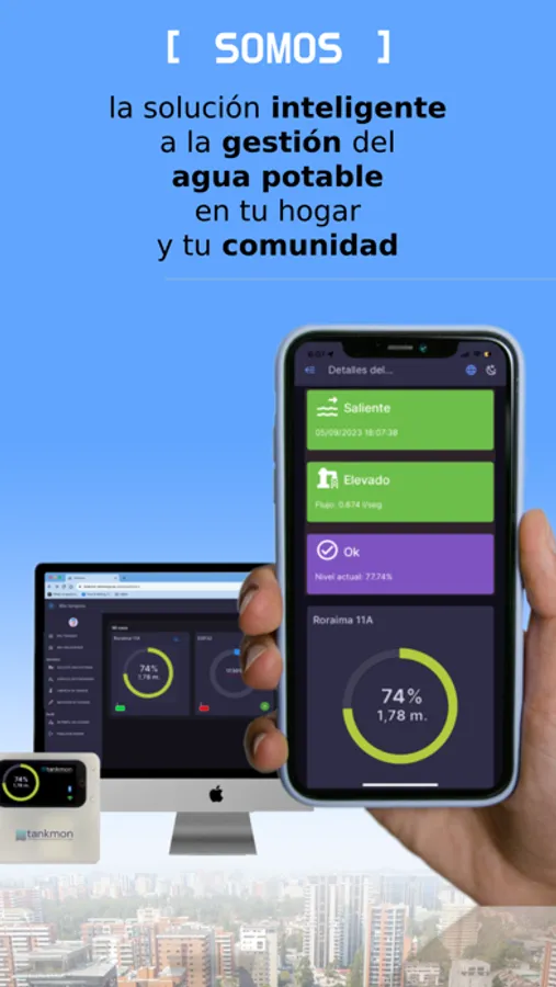 LiquidH2O es un ecosistema tecnológico que proporciona a sus usuarios información en tiempo real sobre el nivel de agua en sus tanques a través de la aplicación móvil. Usando nuestros sensores de profundidad con conectividad IoT, recopilamos datos precisos que brindan una visión clara del estado de sus reservas de agua.