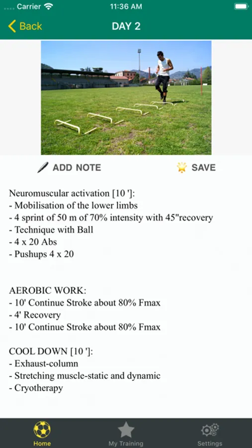 The workouts are described day-to-day, in each one you will find: Heating, Technical part, Tactical Employment, Athletics and regeneration phase .