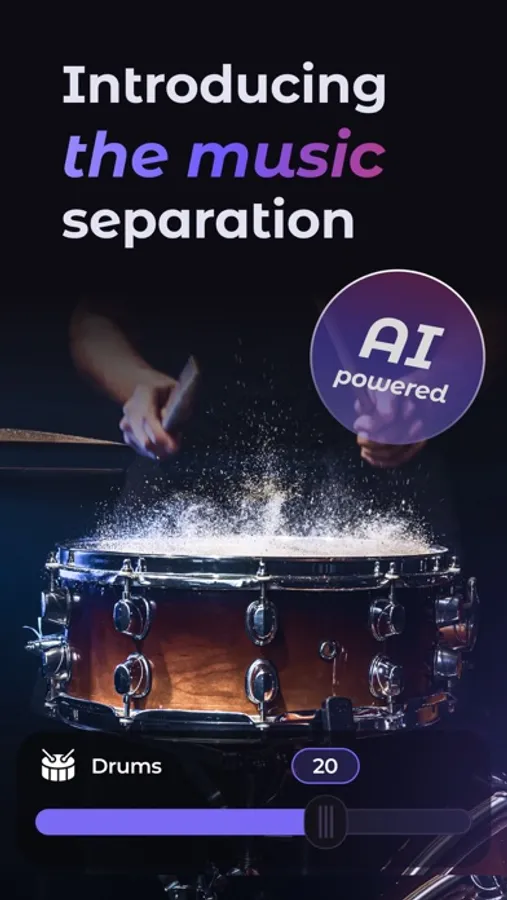 Import songs from a URL, your files, or iTunes. Then pick any song, and our AI-powered music separator will split the songs into stems that can be adjusted.