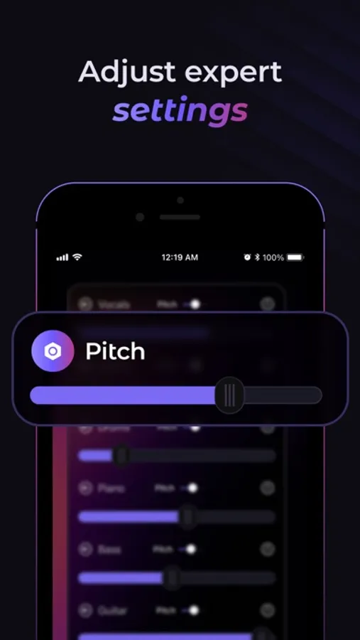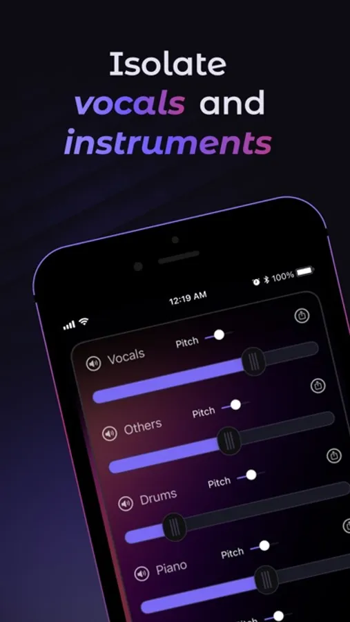Split songs into 6 audio tracks, including vocals and instruments, with MEL. Remove vocals and instruments, and adjust the pitch with utmost ease. Then play or sing, and master your craft.