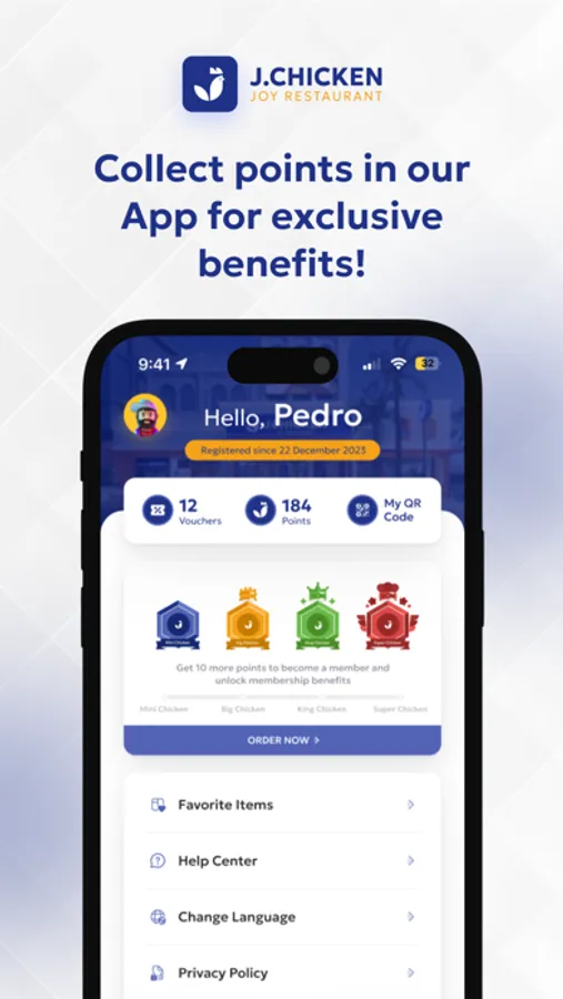 Download the MyJChicken app and join our membership to get exclusive benefits. Earn Points and enjoy easy ordering, along with the excitement of winning rewards!