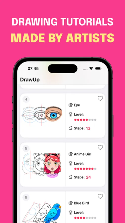 Whether you’re picking up a pencil for the first time or getting back into drawing, DrawUp makes it easy and enjoyable. Follow interactive tutorials, complete daily exercises, and watch your skills grow with every stroke.
