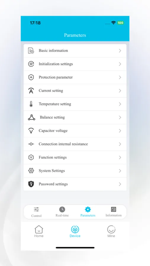 Parameters: Read basic battery information, you can set and change the Bluetooth name.