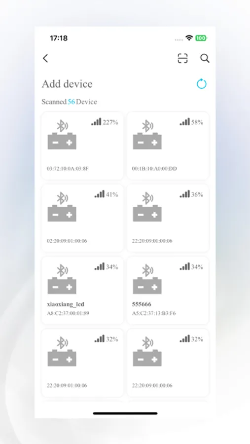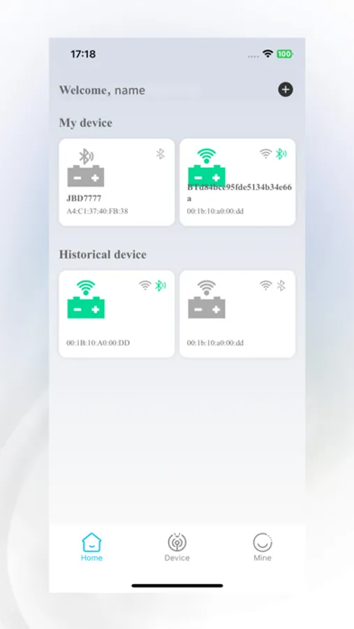 Add device: Display the device that can be added, select the device and connect the device via Bluetooth or WiFi.