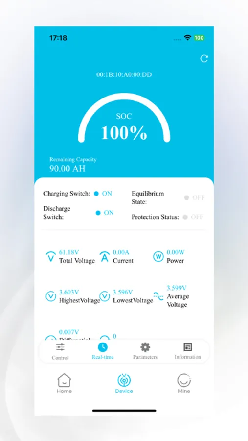 Real-time: You can view the battery data in real time: remaining capacity, charge and discharge status, balance status, protection status, voltage, current, temperature, and single string voltage information.