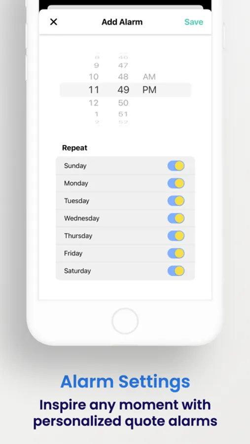 - Alarm Functionality: Greet each day with inspirational quotes, setting alarms for motivation or gentle reminders throughout the day. Customize by time, day, and frequency for your perfect inspirational routine.