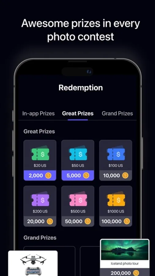 • Redeem Prizes: Win gift cards, top-notch photography equipment, photo tours, and opportunities to showcase your work to a wider audience.
