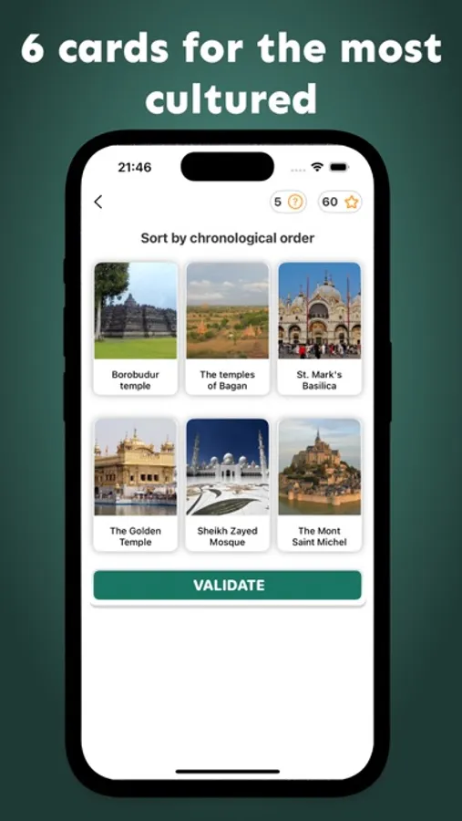 With TimeSort, rediscover the world’s greatest events, masterpieces, and monuments by placing them in chronological order.