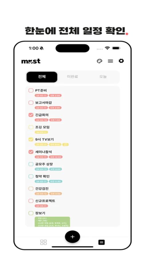 - 추가한 모든 일정을 한 눈에 확인할 수 있어요.