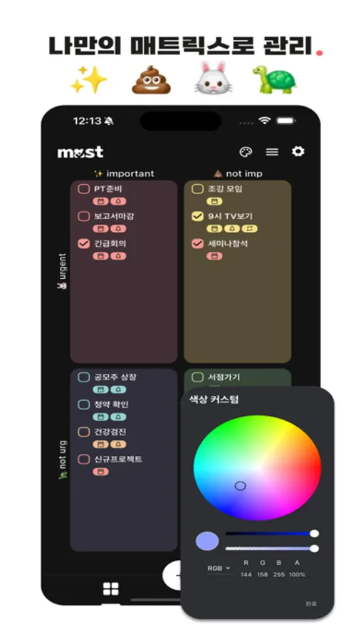 - 아이젠하워 매트릭스를 이용해서 체계적으로 일정을 관리할 수 있어요.