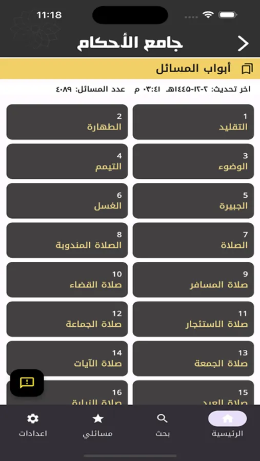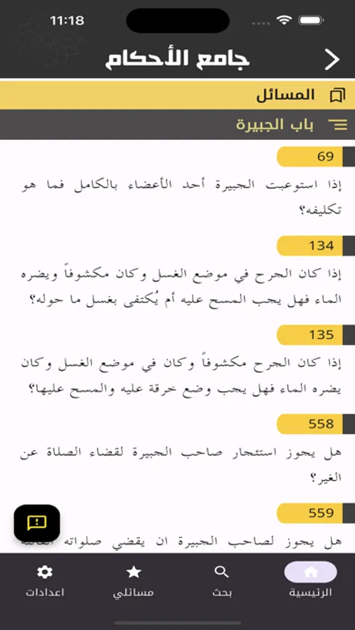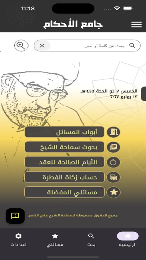 جامع الأحكام تطبيق يضم أكثر من 4000 مسألة فهو يعنى بجمع أراء الفقهاء الذين يرجع لهم في التقليد وقد قمت بذلك تسهيلا على المكلف واختصارا للوقت وجميع الفتاوى الموجودة قد أخدت إما من رسائلهم العملية أو من مواقعهم الإلكترونية أو عبر الإستفتاء عبر مكاتبهم.