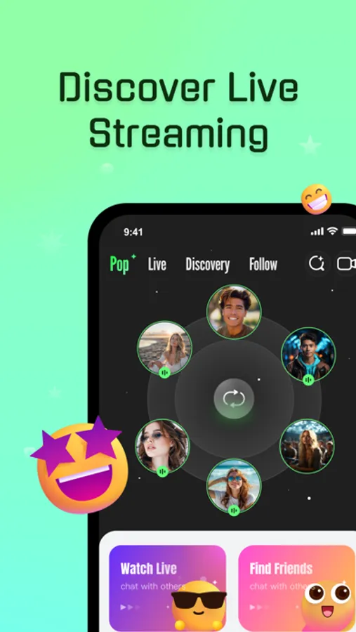 Join the real-time Party room to chat and interact with friends and new partners, making every moment full of laughter and excitement!
