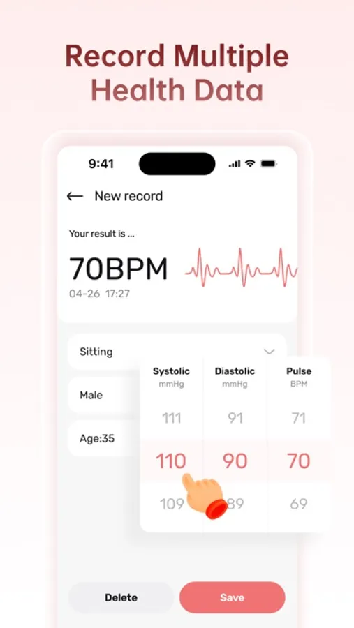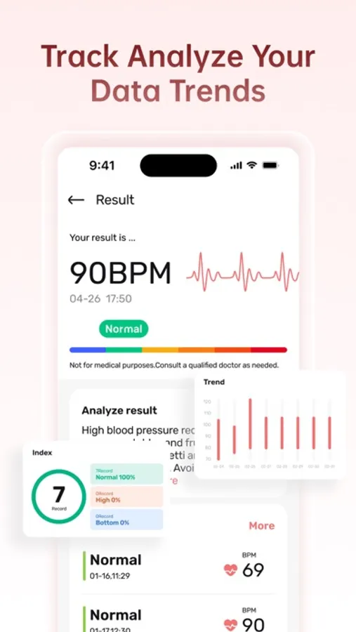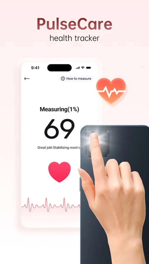 Place your finger on your phone's camera, PulseCare will detect subtle changes in blood concentration, thus getting you heart rate readings. If you need professional heart rate detection, please use professional medical equipment.