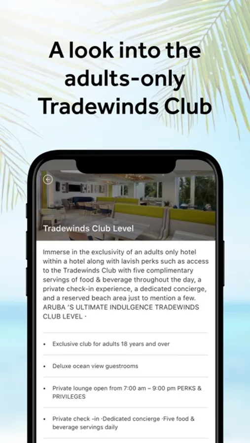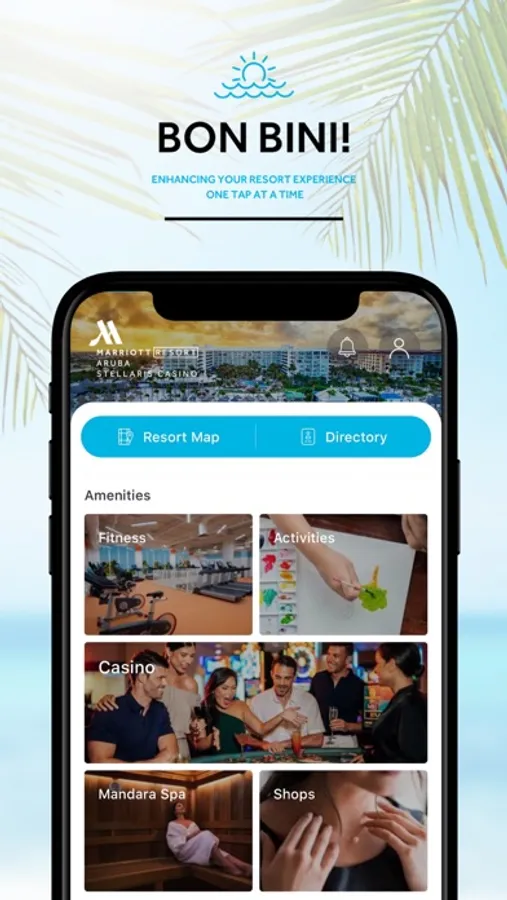 The Bon Bini app is an accessible and user-friendly tool designed to enhance the guest experience during their stay. The app provides guests with access to all hotel information, right at their fingertips. Upon checking in, guests can easily navigate through the property map to familiarize themselves with the layout of the hotel and its amenities. The app also features a comprehensive directory with contact information for all hotel services, making it easy for guests to make requests or inquiries.