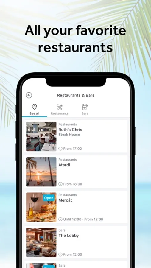 - Dinner reservation links to your favorite on-site restaurants