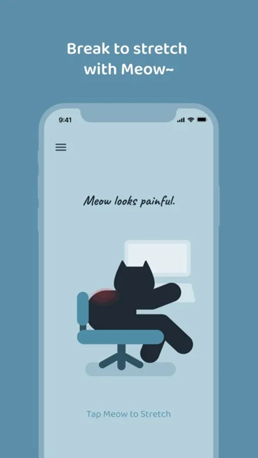 I'm MeowMove. I’m here to help you take quick breaks to stretch in every 1-2 hours.