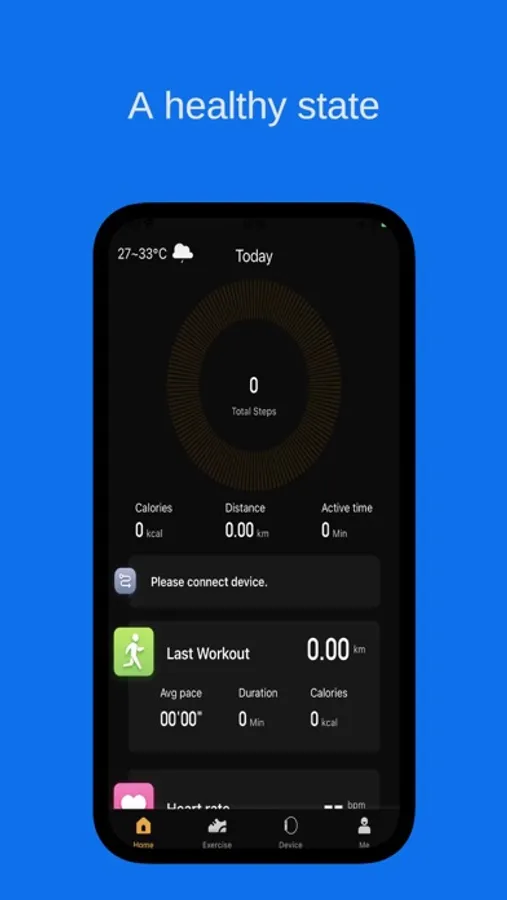 ● The watch automatically syncs data to the app and displays graphs by day, week, and month, including: