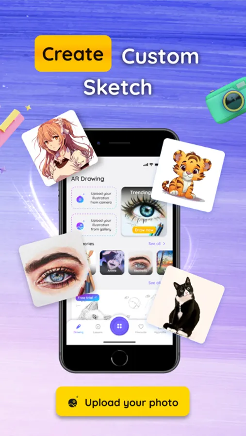 * AR Drawing: Paint - Sketch is an innovative mobile app that helps you learn to draw sketches and allows you to create stunning drawings and paintings using augmented reality technology by camera. Now it's time for you to draw and sketch anything you want on any surface!