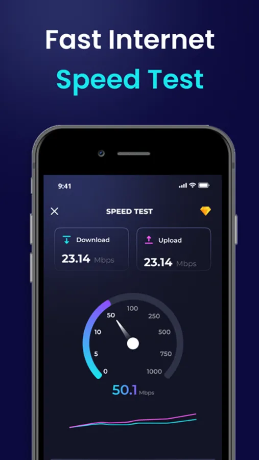 - Unlimited speed tests 2G, 3G, 4G, 5G, DSL, ADSL, and Wi-Fi at one-tap