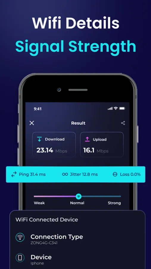 With the internet speed test, you can easily check WiFi speed with a single click. Our app offers broad internet speed testing, including ping, download, and upload speeds. You can use the WiFi speed test to see whether your WiFi is strong, normal, or weak.