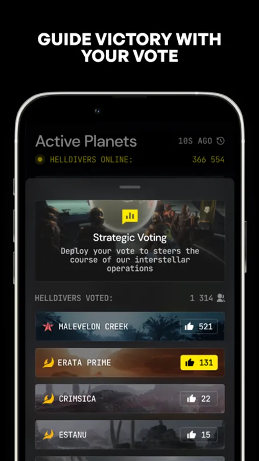 Vote together with other Divers inside the app on which planet should be prioritised next.