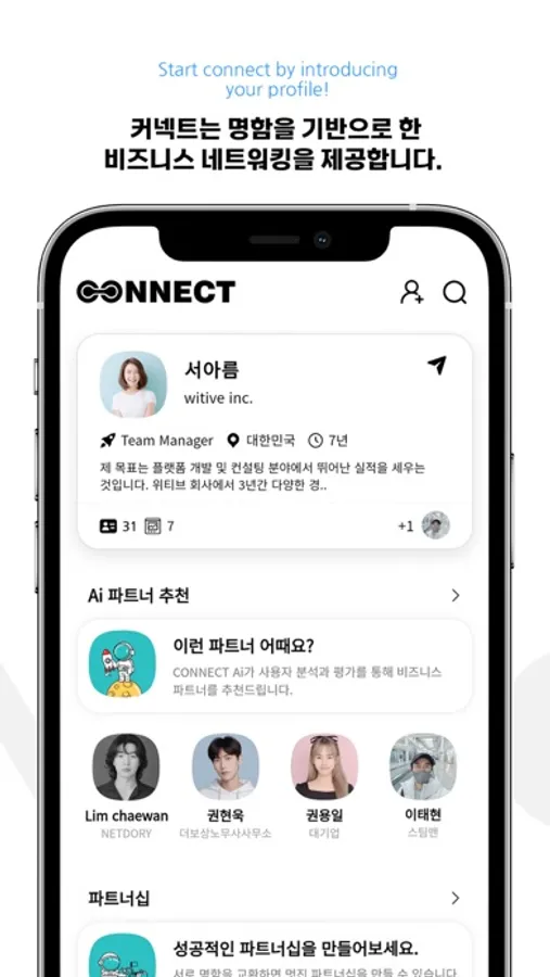 4. 비즈니스 파트너 및 멤버 찾기: 커넥트의 검색 기능을 통해 사용자는 필요한 스킬셋, 산업, 위치 등을 기준으로 이상적인 비즈니스 파트너나 프로젝트 팀원을 찾을 수 있습니다.