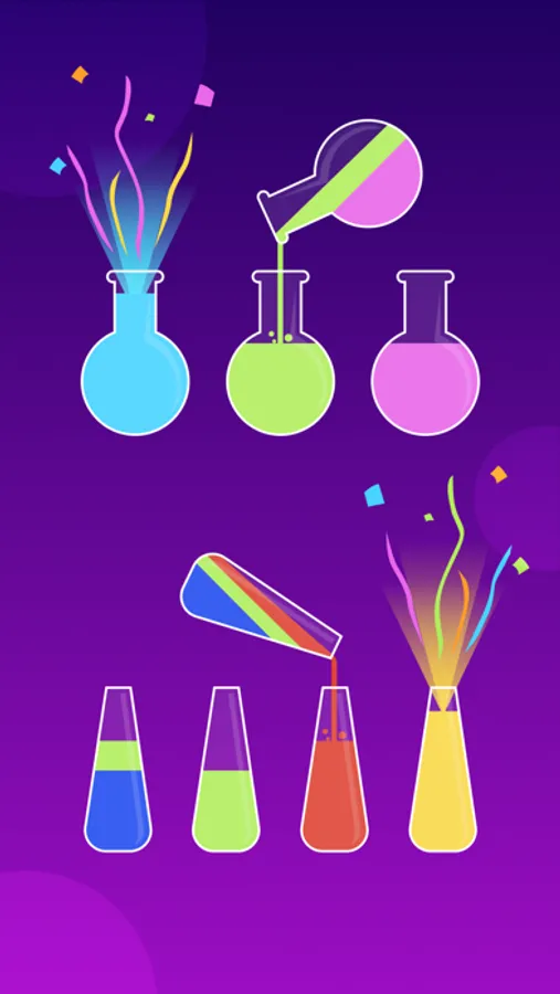 - Enhance your sorting skills with useful power-ups like Undo, Restart, Hint, and extra bottles to pour water into.