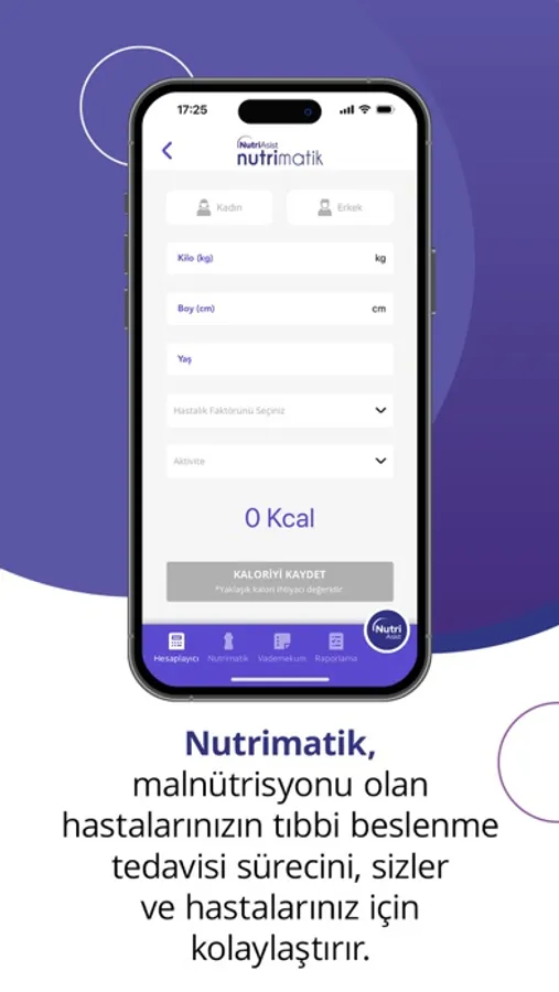 Nutrimatik: Malnütrisyonlu hastalar için tıbbi beslenme tedavisi planlanmasına yardımcı olur. Nutrimatik, Harris Benedict formülü ve ESPEN Onkoloji kılavuzu önerileriyle hastanızın kalori ve protein ihtiyacını hesaplar.