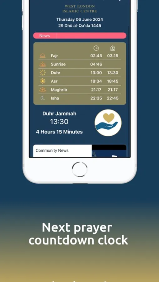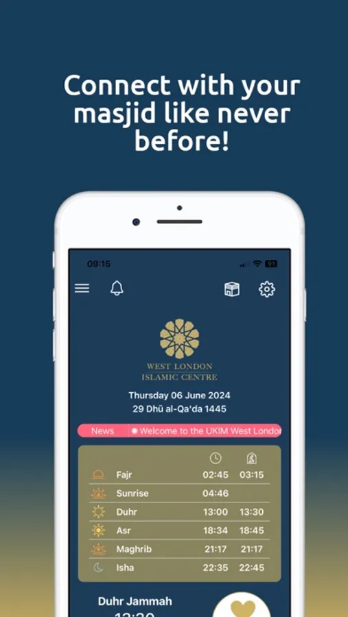 Keep up to date and view real-time news from the Mosque on the home screen.
