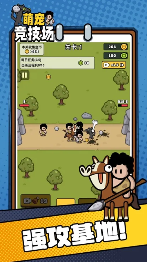 《萌宠竞技场》是一款放置类策略对战游戏。在游戏中,玩家将扮演自由迁徙的萌宠精英战士首领,通过召集不同时期的萌宠精英战士进攻打败形色各异的部落敌人,一步步跃迁主宰属于自己的文明世界。