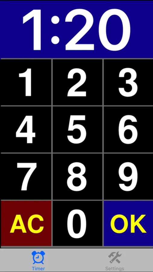 To set a timer for 1 hour and 20 minutes, just tap 1 2 0 and hit OK.