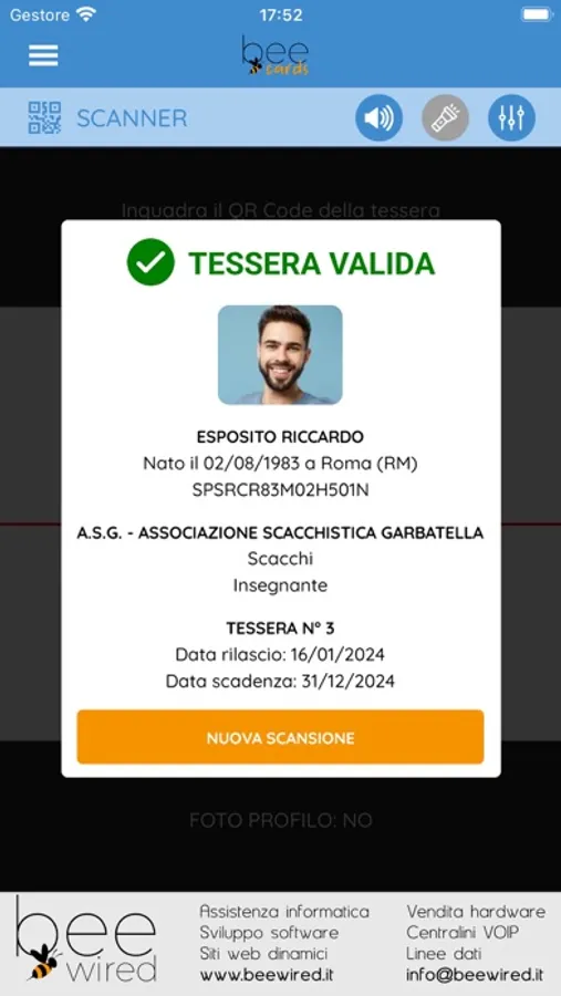 Questa app nasce con lo scopo di essere utilizzata in accoppiata con l'app BeeCards. Grazie a quest'app infatti sarà possibile verificare, direttamente dal tuo device, la validità di una tessera BeeCards. La verifica della tessera verrà effettuata attraverso la scansione del QR Code presente sulla tessera. Ti ricordiamo che per visualizzare la tua tessera puoi utilizzare l'app BeeCards oppure utilizzare la copia della tessera che hai ricevuto per email. Ricorda inoltre che le tessere accettate da questa app sono esclusivamente quelle su cui è stampato il QR code, tutti gli altri tipi di tessera non saranno accettati.