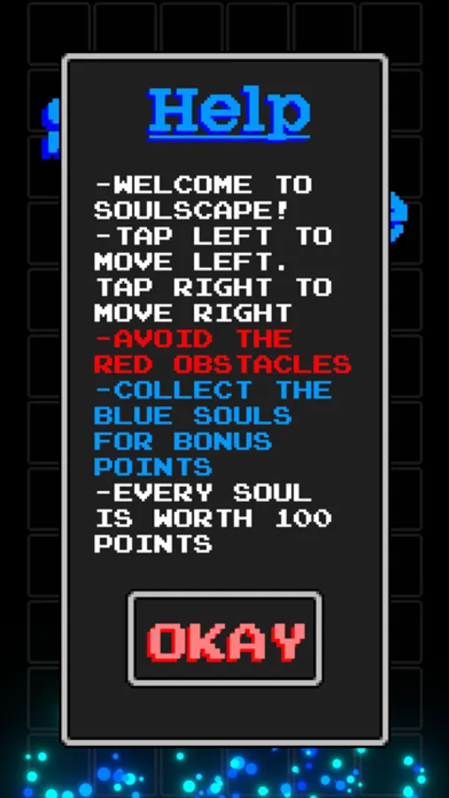 Avoid the red obstacles and collect the blue souls as the game moves faster and faster.