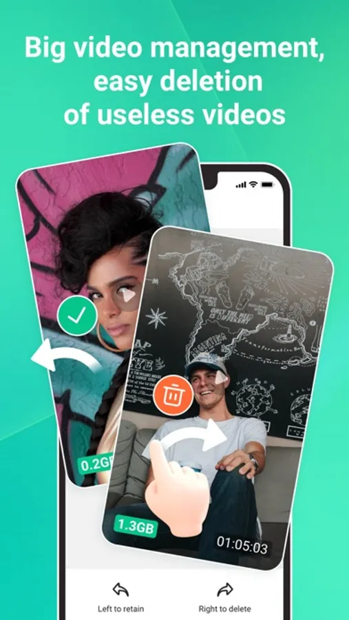 ►Video management: Is there too much video in the phone? CleanKoala is here to help you! You can batch select the videos you want to delete, or enter the operation page to decide whether to delete or keep the videos by sliding left or right. Two operation methods are designed to help you better clean up your phone's memory