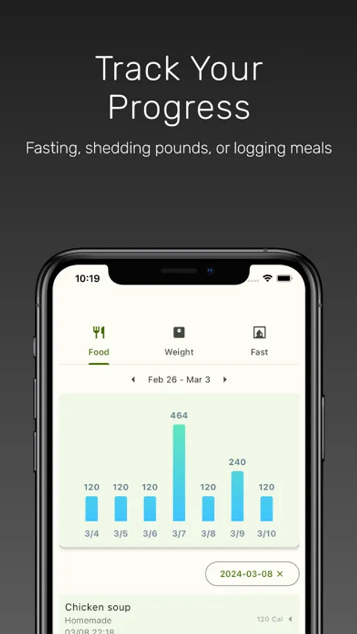 History at a Glance: Dive into your eating habits, weight changes, and fasting patterns with our easy-to-navigate history feature.