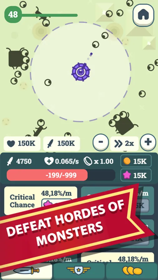 Playing this idle defense game is easy. Strategically manage tense and exciting battles. Prevent monsters from destroying the core defense and surrounding areas. Unlock powerful upgrades and abilities to build an even stronger tower. Upgrade your skills, command the battlefield, and become invincible!