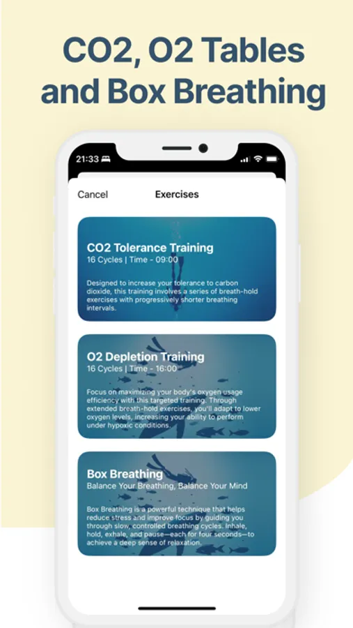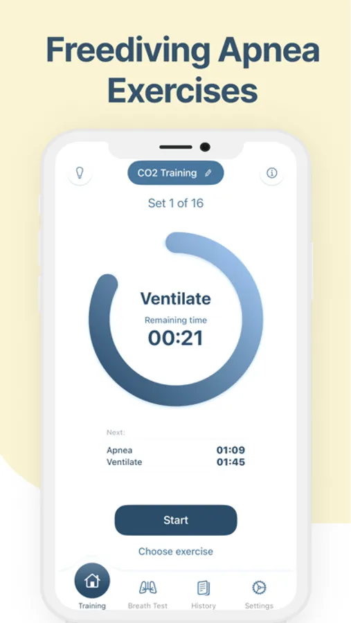 Take your freediving, snorkeling, scuba diving, spearfishing, or surfing to new depths with the Freediving Apnea Trainer app. Enhance your lung capacity, stamina, and breath-hold time with our specialized CO2 and O2 training tables designed for enthusiasts like you.