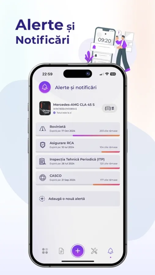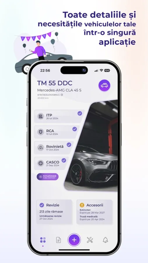 Starea mecanică și a documentelor este întotdeauna vizibilă în aplicație! Te anunțăm în mod constant în cazul expirării documentelor de tipul Asigurare RCA, CASCO, Rovinietă, Inspecție Tehnică Periodică (ITP) și a operațiunilor de tip mentenanță auto (mecanică sau estetică).