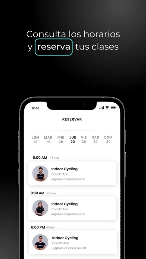 Conoce los horarios de tu estudio, reserva y compra fácilmente desde la app.