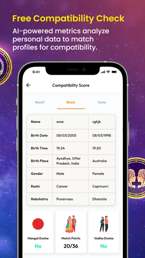 Use an intensive compatibility analysis to observe the dynamics of your relationships. Karmm offers insights into the astrological elements that affect concord and compatibility, whether you're comparing private relationships, friendships, or commercial collaborations.