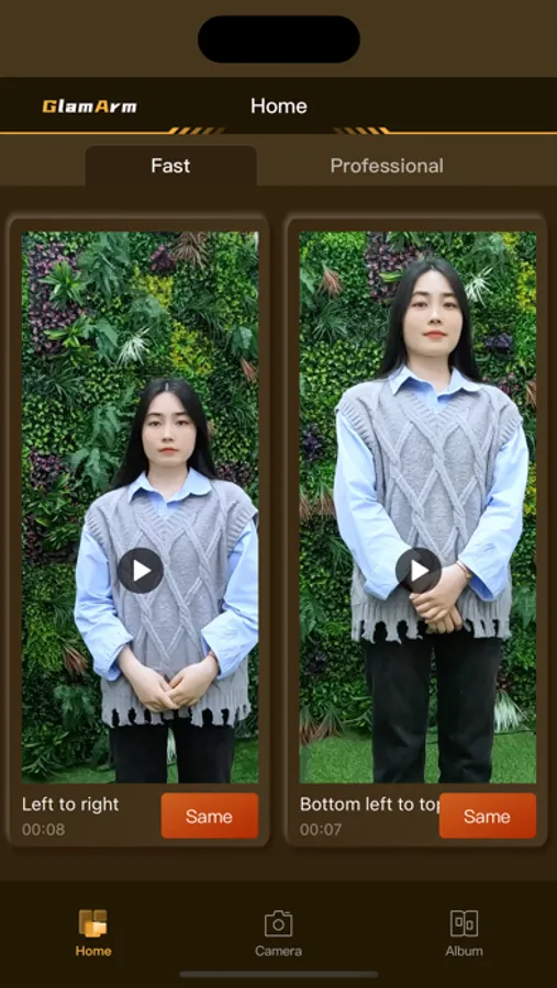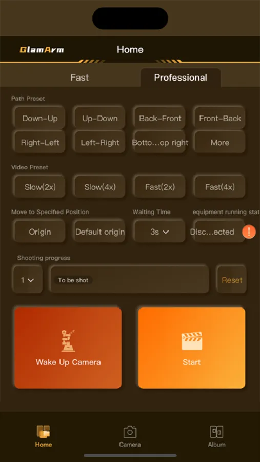 Professional mode on the home page integrates robotic arm and video template, one page to handle all the video.