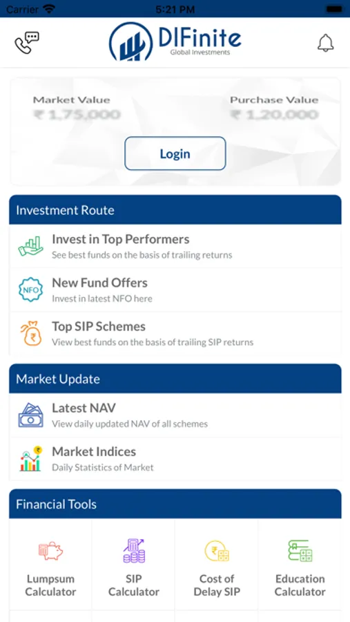 DIFinite by Deepak Investments is one-stop shopping for all your Financial needs. You can use this state of the art app to stay on top of your Complete Financial Portfolio with all assets: