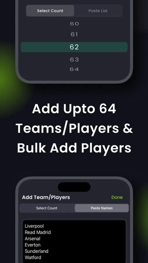 - Customizing Team / Player Names: Unlike most bracket makers in the market that only shows “Team 1 vs Team 2”, you can actually add up your team names in our app which makes it easier to manage and remember. Isn’t it what every tournament/esports organizer wants?